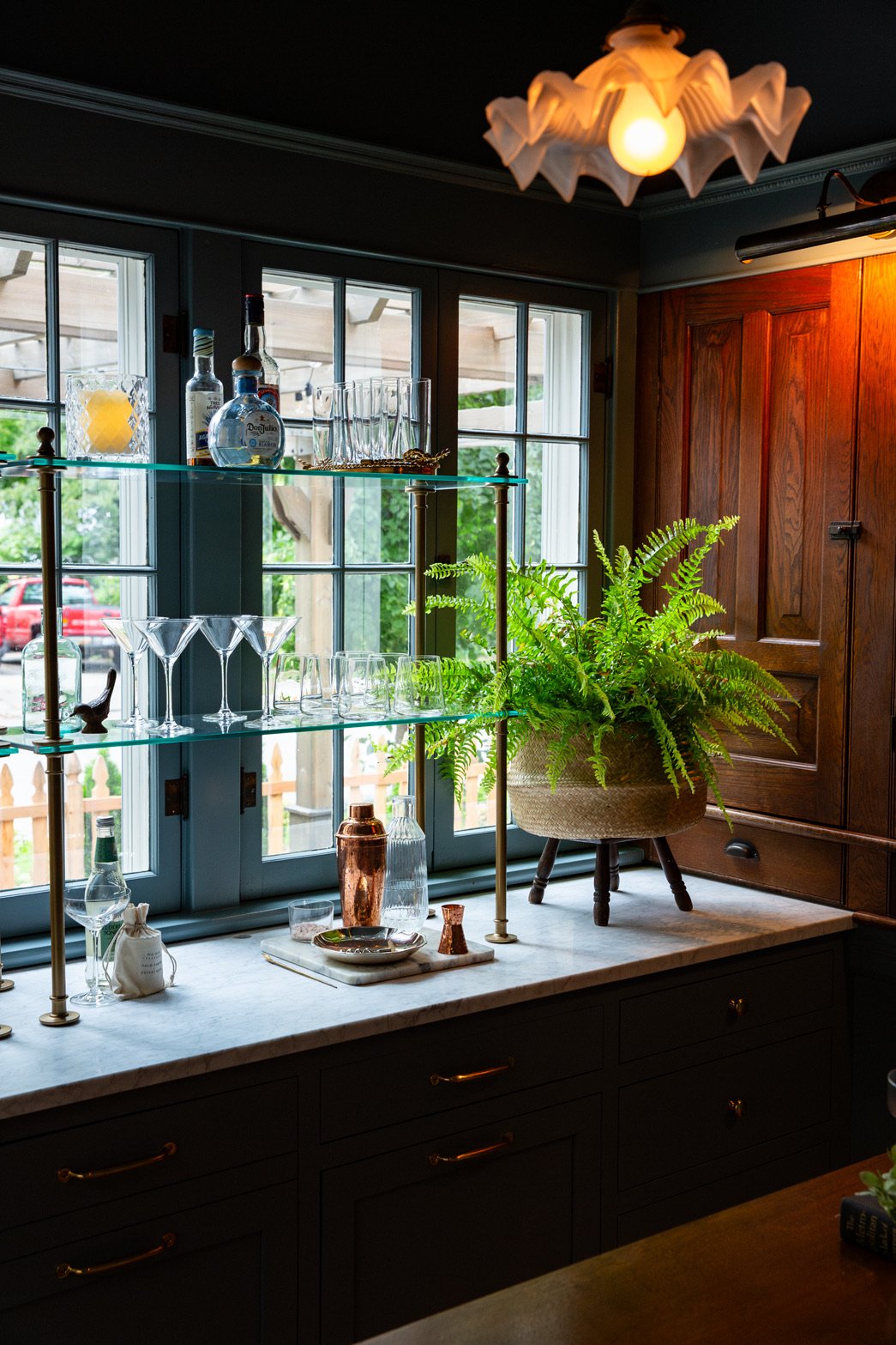 The Oak House, located in downtown Traverse City, was a complete historic home renovation. Built in 1904, original wood moldings and built-ins were preserved while the reimagined layout, complete with a primary suite addition, offered modern functionality. The exterior and landscaping were designed to create a seamless flow between indoor and outdoor living spaces. Designed and decorated with meticulous attention to every detail, this home was lavishly filled with love and intentionality.